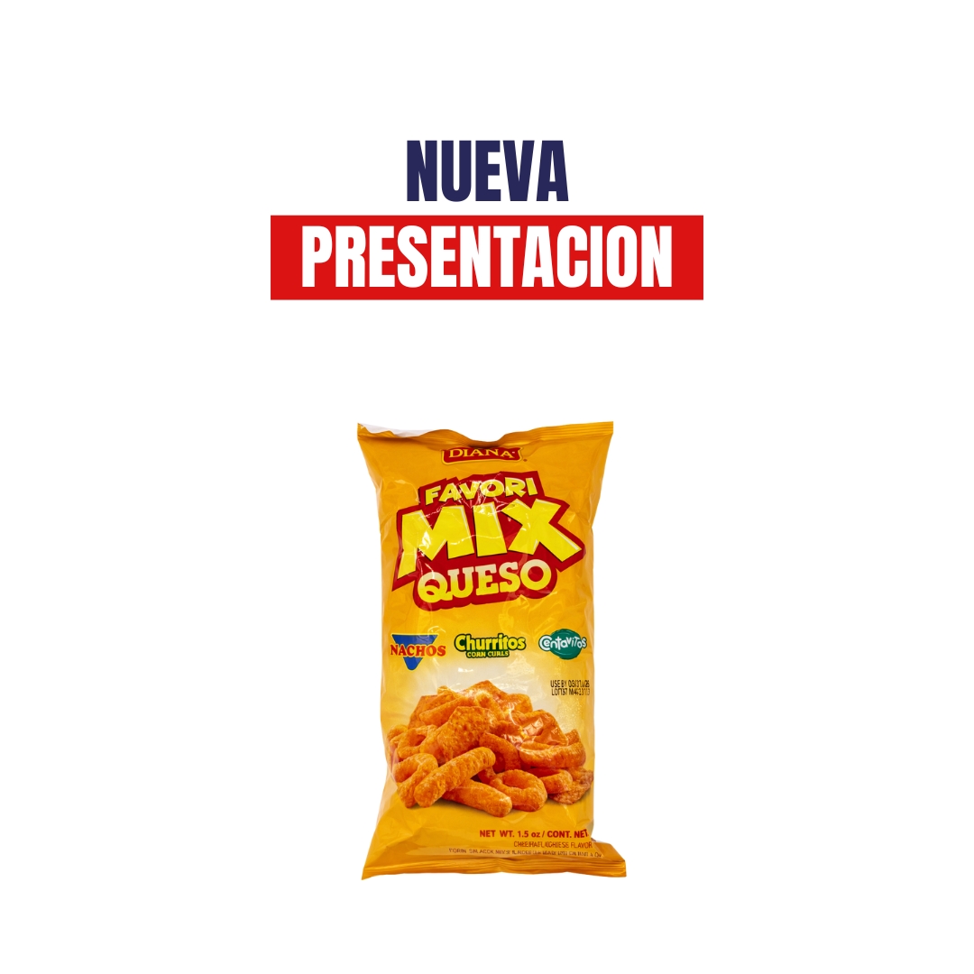 Favorimix Queso, mezcla de  Nachos, Churritos y Centavitos.